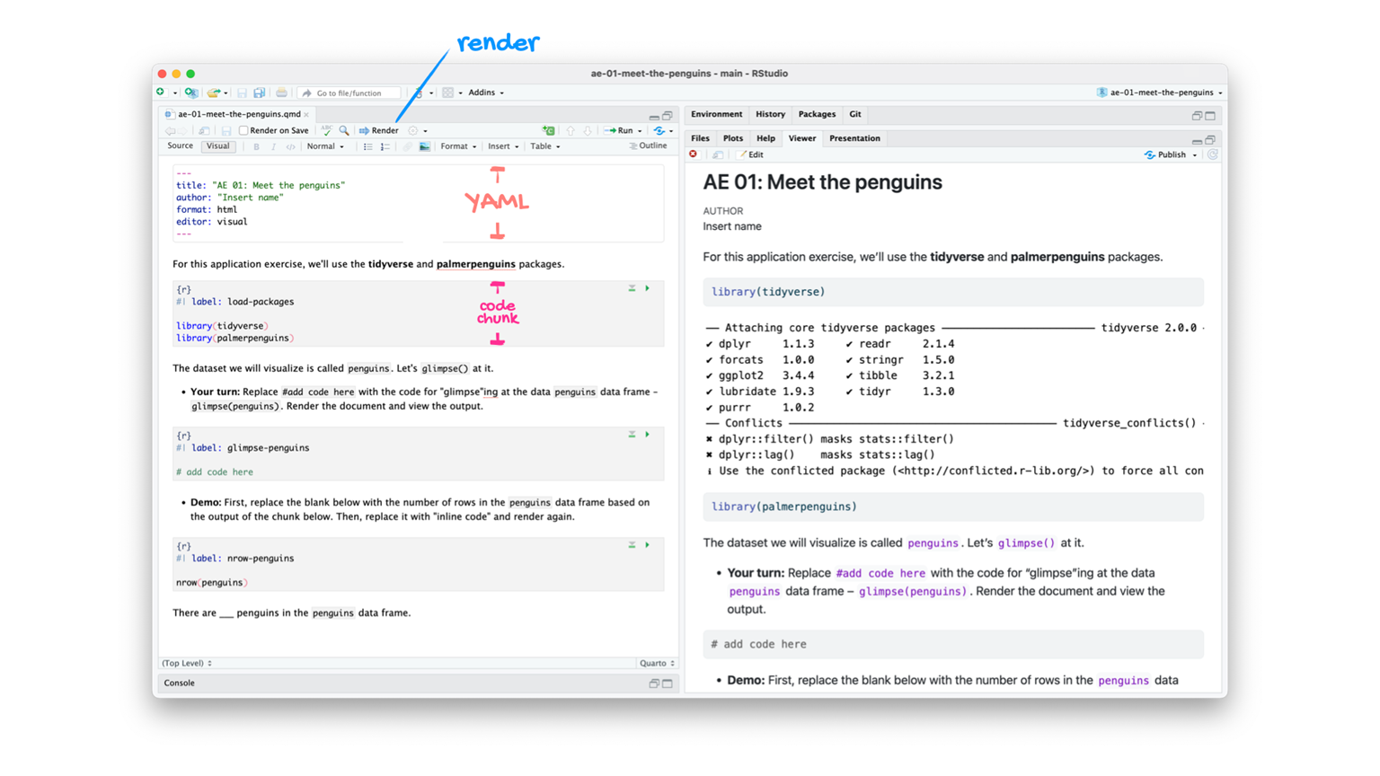 message: false hides any messages emitted by the code in your rendered documentSave this code-along in your newly created project folder.