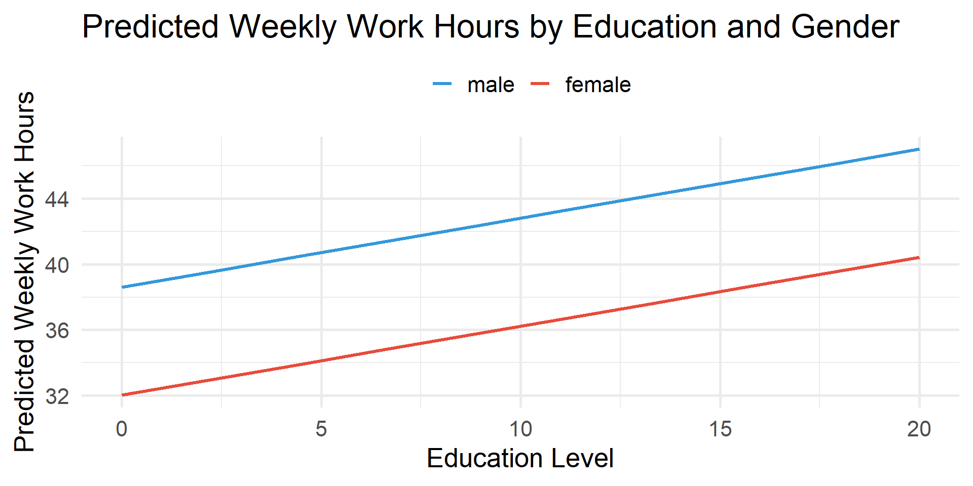 tbl_regression()OLS Regression predicting weekly work hours by years of education and gender