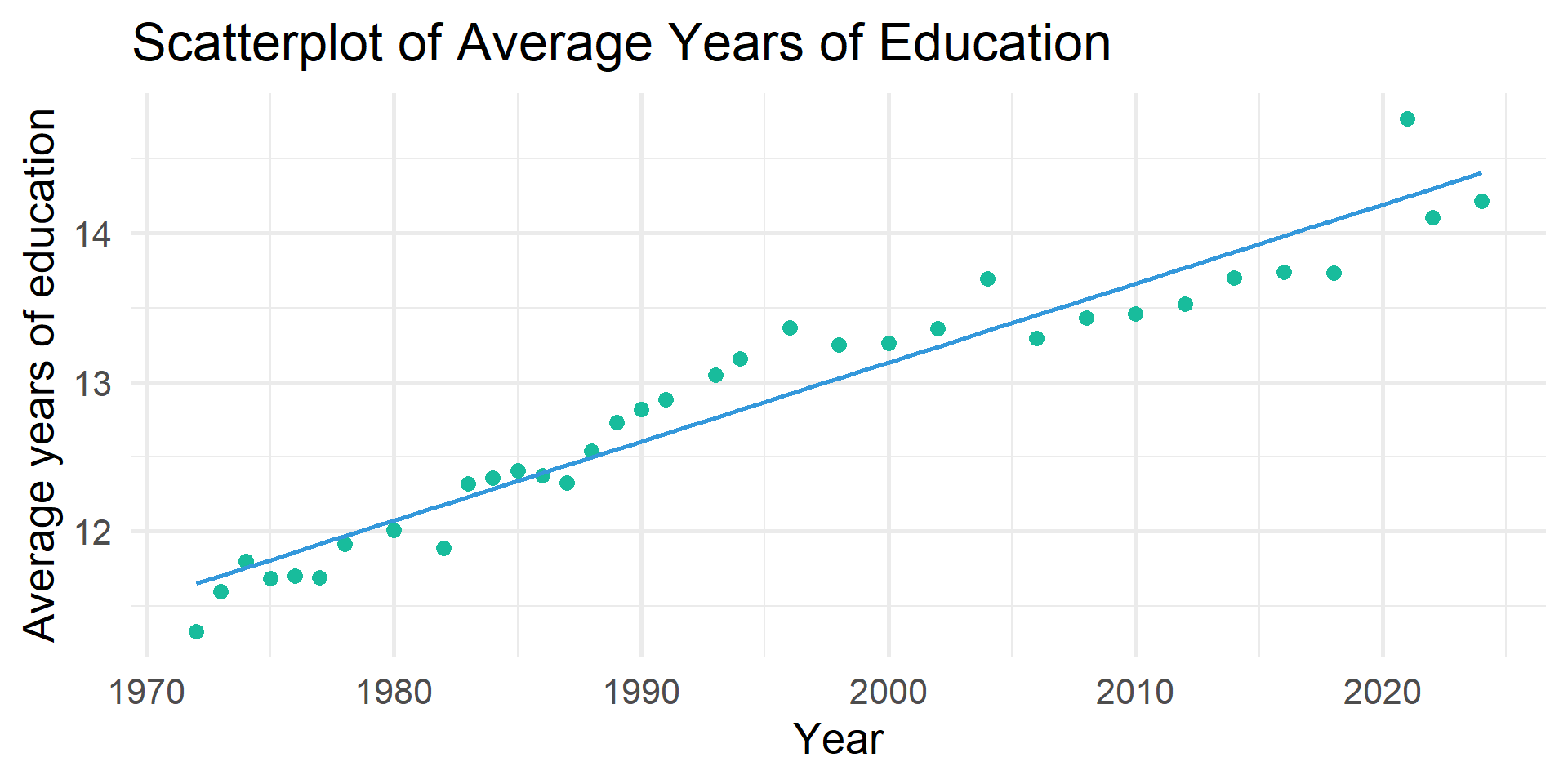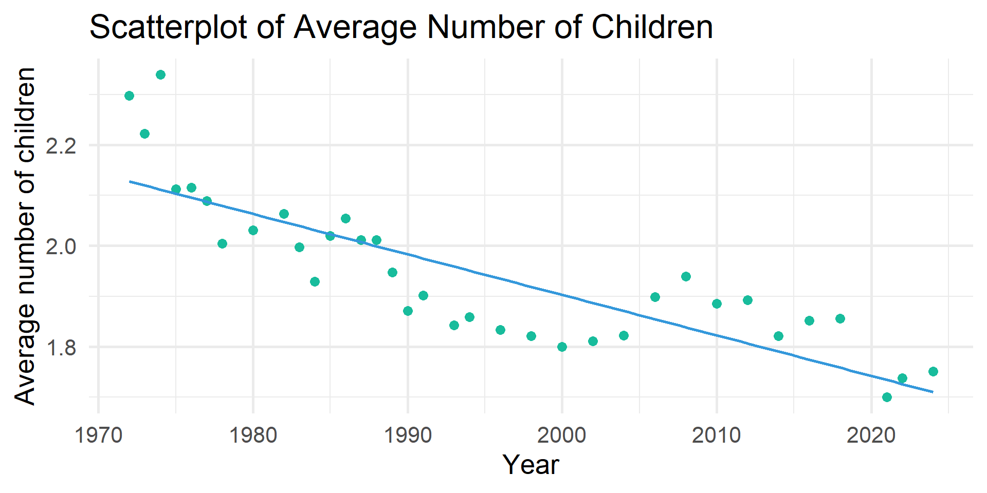 my_data <- full_join(my_cat, my_con, by = c("year", "id")) # match by 2 varsHave the average number of children changed over time?